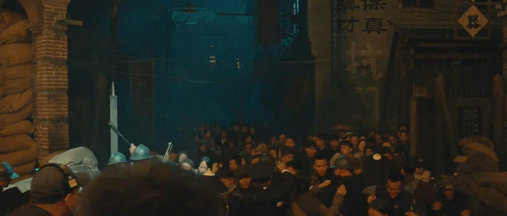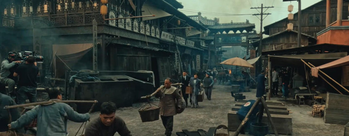 不仅场景要搭建好,导演还改革了多半群演,来辅佐大场景拍摄。