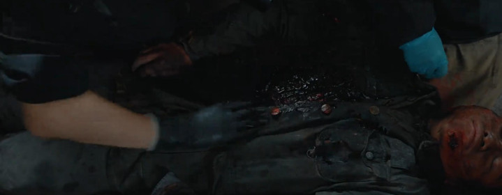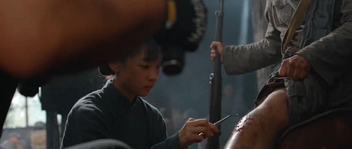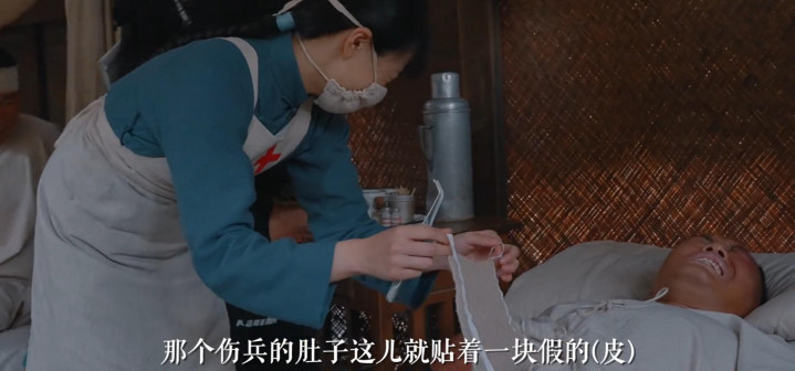 比如伤兵腹部的运动伤,用传神的假皮还原了伤口的血肉纹理,连照看换药的镜头都毫无违和感。