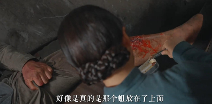 除了穿戴,演员身上的妆容细节更是细密,尤其是伤口妆效。