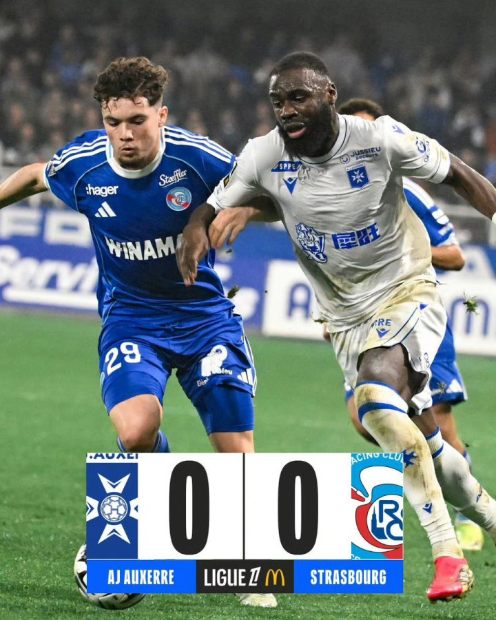 欧塞尔主场迎战斯特拉斯堡,两边均未能攻破对方球门,全场战成0-0平局。