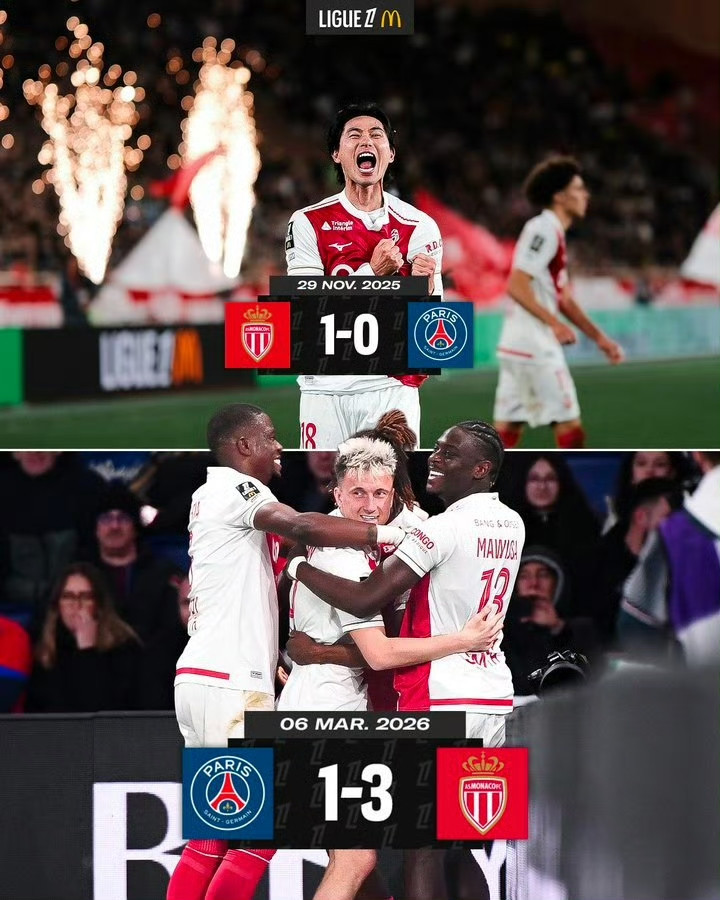 ⚔️ 双杀! ✌ 摩纳哥本赛季对阵大巴黎的两场比赛均获得得手