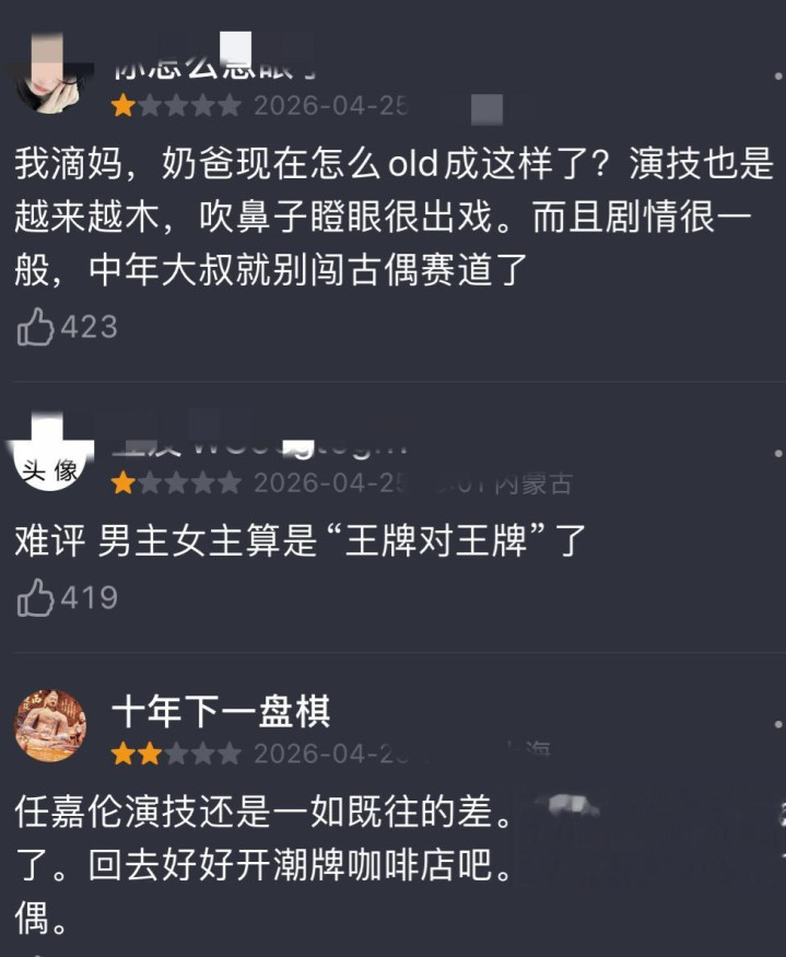 两集看完,就没从他的眼睛里看到半点属于东说念主物的内心变化,经久王人是一个色调,他演的没意旨道理,不雅众看的也没趣