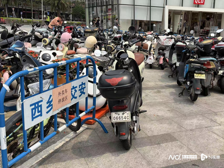 这种刚性供需矛盾,在通勤刚需高度聚合的地铁口、商圈推崇得最为凸起。4月20日傍晚6点通勤晚岑岭,记者在紧邻天虹阛阓的西乡地铁站A口看到,现场虽规定了有益的电动自行车充电区和停放区,但充电区内夹杂停放着大皆未充电车辆,区外沿还排着一两排违纪停放的非天真车,与盲说念之间仅留出轻微通说念;即便竖立了低矮雕栏分隔,仍有分享单车、分享电动自行车在路面无序停放,行东说念主来去颠倒未便。