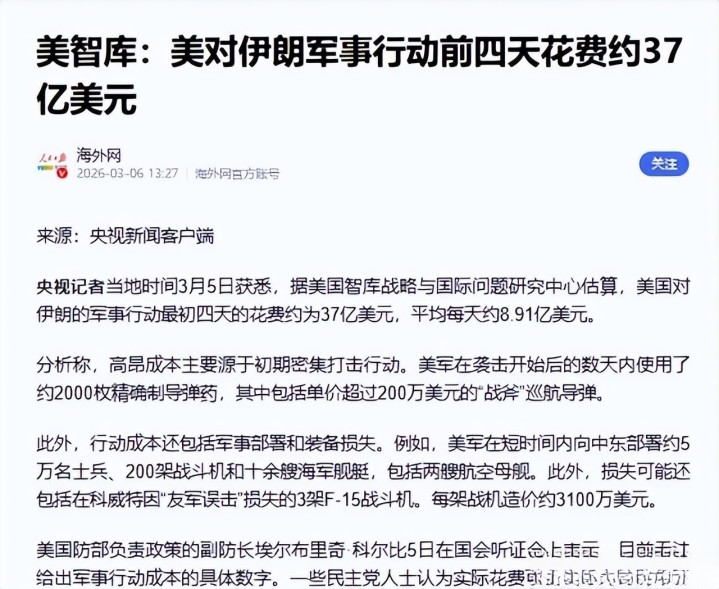 更毒手的是后勤压力。开战仅一周,好意思军的阻止导弹与打击弹药蚀本重大,智库估算初期老本已冲突数亿好意思元。特朗普鼓动军工企业扩产,但复杂的供应链体系导致短期产能难以进步,库存告急的问题正在突显。