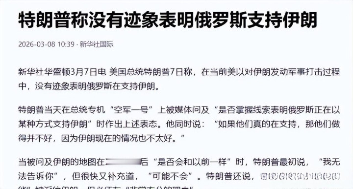 2026年3月6日普京与伊朗总统佩泽希皆扬的一通电话,搅拌了本就紧绷的中东时事。好意思谍报部门爆料俄向伊朗提供好意思军中东部署谍报,而特朗普却公开否定,这背后是大国博弈的暗线,也预示着中东冲突的升级风险正在失控。