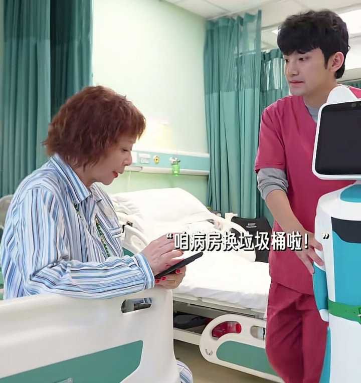 护工推来了一台医疗机器东说念主,病东说念主昂首一看:病房换垃圾桶啦?