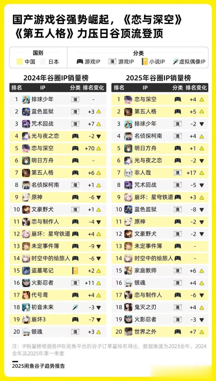 《第五东说念主格》是谷子市场中较受接待的一款IP,2025年闲鱼谷子诠释披露:《第五东说念主格》线下销量是仅次于《恋与深空》的国谷第二。其线下快闪店单店月销破百万,甩手款往往秒罄,二手溢价高达300%。数据披露,破钞者中女性占比78%,00 后和05 后为主,单次均超百元。本年春节期间,《第五东说念主格》的邻近居品更是成为销量王者。